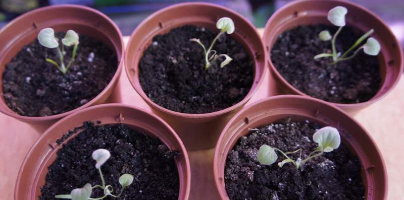 Разсадът се развива бавно. Когато се появят 3-4-ите истински листа, посевите се гмуркат. Младите храсти се отстраняват внимателно от земята, трансплантират се в отделни саксии.