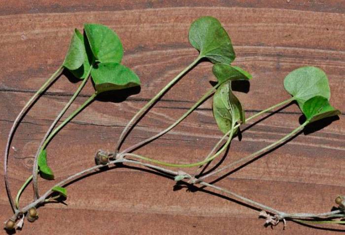 Растението дихондра получи името си заради специалната структура на плодовете. Те съдържат две зърна. Издънките каскадират надолу, за да създадат красив визуален ефект.