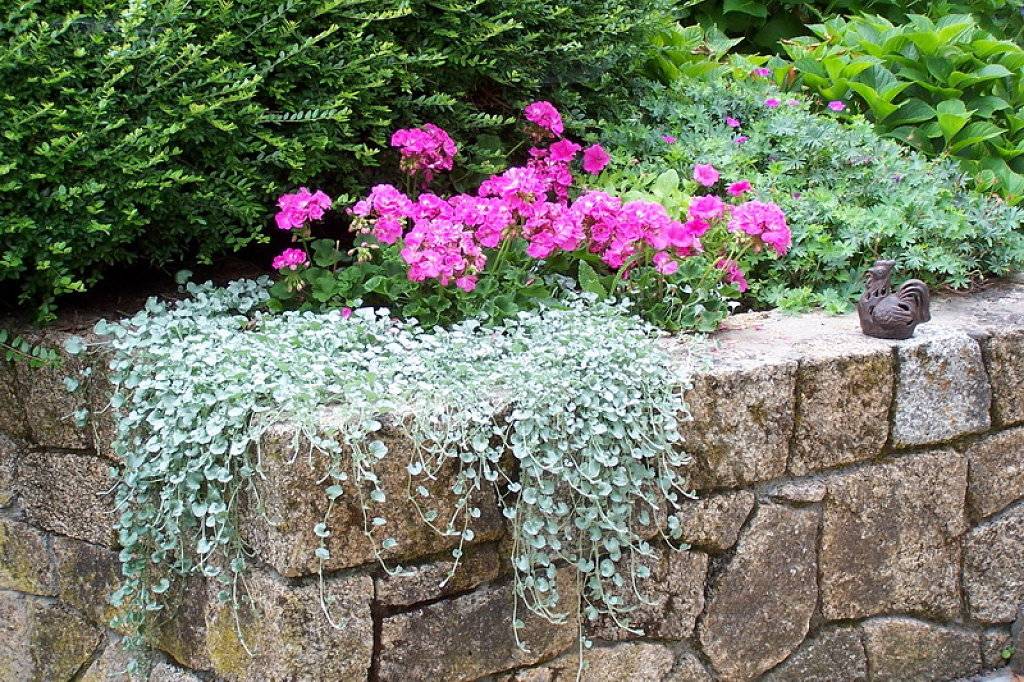 Можете да засадите дихондра в саксии. Растението ще покрие кухините и ще скрие земята, което ще направи композицията завършена и красива. Лозите ще падат красиво от стените на цветното легло. Когато използвате такива ампелни сортове, можете да проявите въображение.
