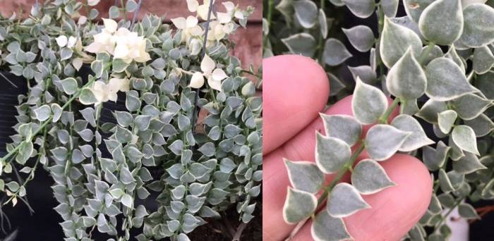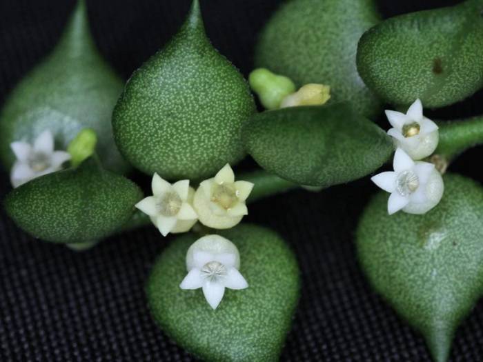 Ябълковият лист на Dyschidia има изумрудено зелени големи листа с форма на ябълка. Цветовете са бели.