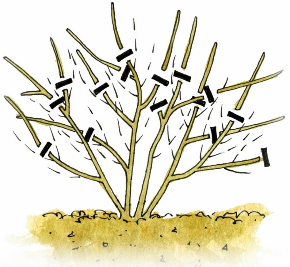 Избледнелите клони трябва редовно да се отстраняват до младите пъпки под тях.