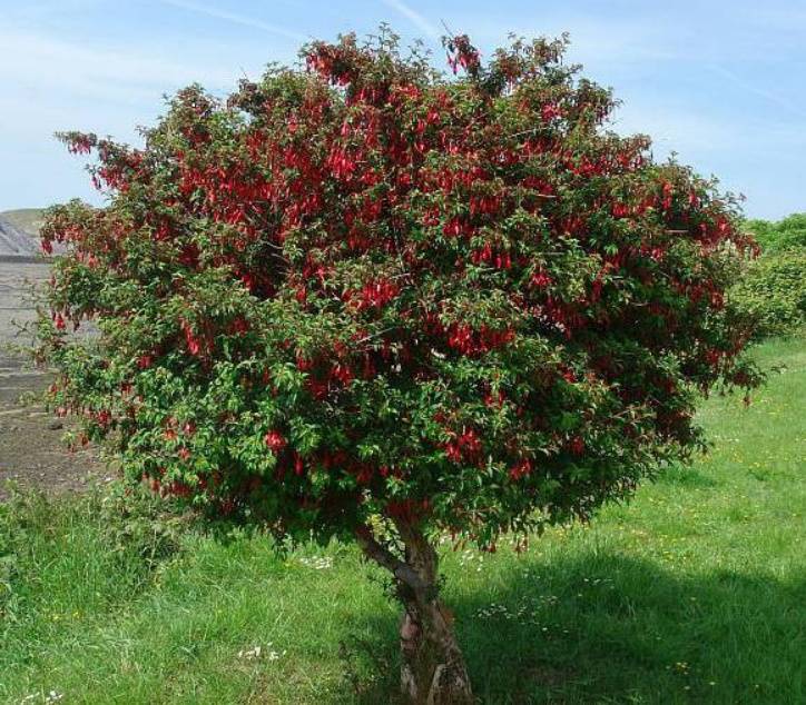 Ако Fuchsia, когато кореновата им система расте, се трансплантира в по-големи цветни лехи, от тях при достатъчно поливане и хранене могат да растат растения с височина няколко метра. По този начин, малка фуксия е цвете в саксия, което, ако е правилно отгледано, може да се превърне в цветно дърво с годините.
