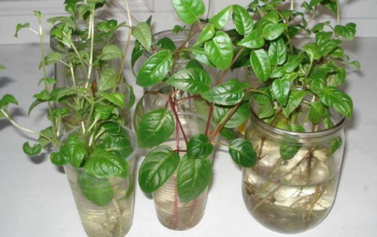 Резниците на фуксия също се засаждат в малки чашки за вкореняване. Обикновено отрязаните стъбла на фуксия с дължина до 10-15 см се оставят във вода за покълване на корени. Резниците на фуксия, дори без обработка с корен стимуланти и почва, образуват корени много бързо (за 2-3 седмици). Пресаждането на резници в земята може да започне, когато се образуват 2-3 корена.
