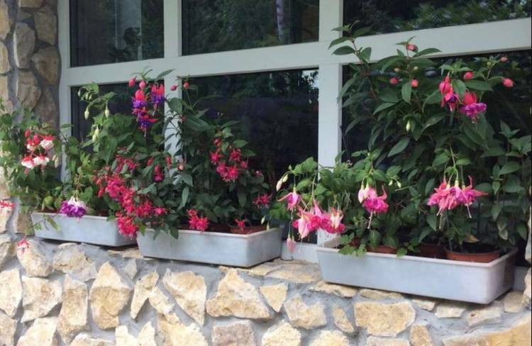 Предимствата на отглеждането на фуксии на открито в саксии в сравнение с поставянето в висящи саксии са очевидни: растенията не страдат от пориви на вятъра, корените им не се прегряват и е по-лесно да се поливат.