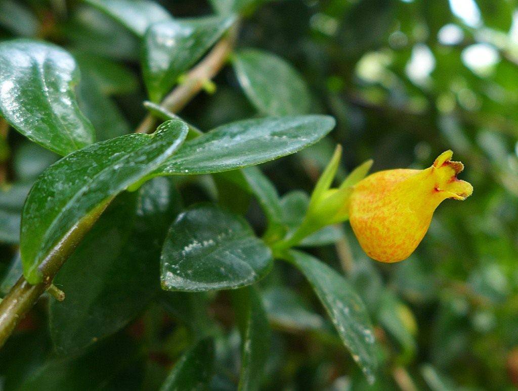 Цветът на хипоцирта (друго име на нематантхус) е малък храст с ярки венчелистчета и леко блестящи листа.