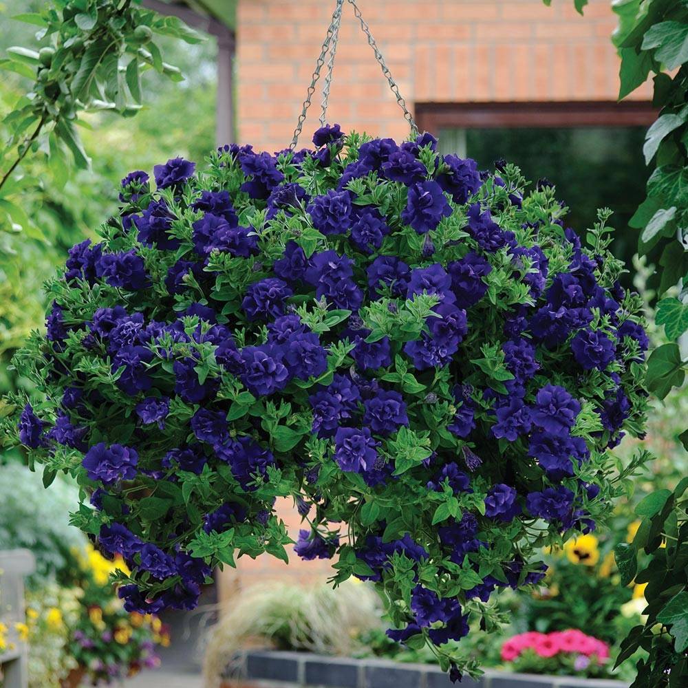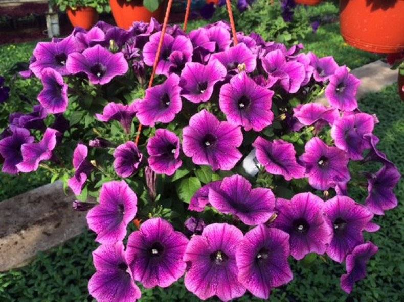 Петунията расте добре във висяща саксия, цъфти няколко месеца. Тя е непретенциозна в грижите. Това е едно от най-популярните ампелни растения за саксии на улицата.