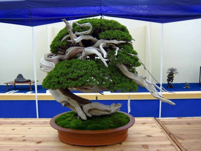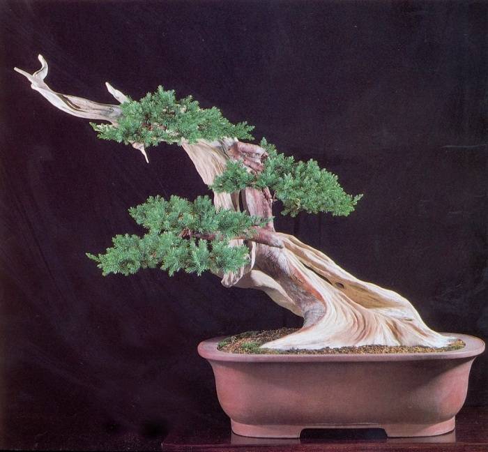 Това са растения с петна от мъртво дърво. Най-често за това се използва хвойна, растяща в природата по планински склонове. Фрагменти от кората на това растение избледняват до белота на слънце. Има и зони, които обикновено не са покрити с кора. В бонсай части от растението се отстраняват изкуствено.