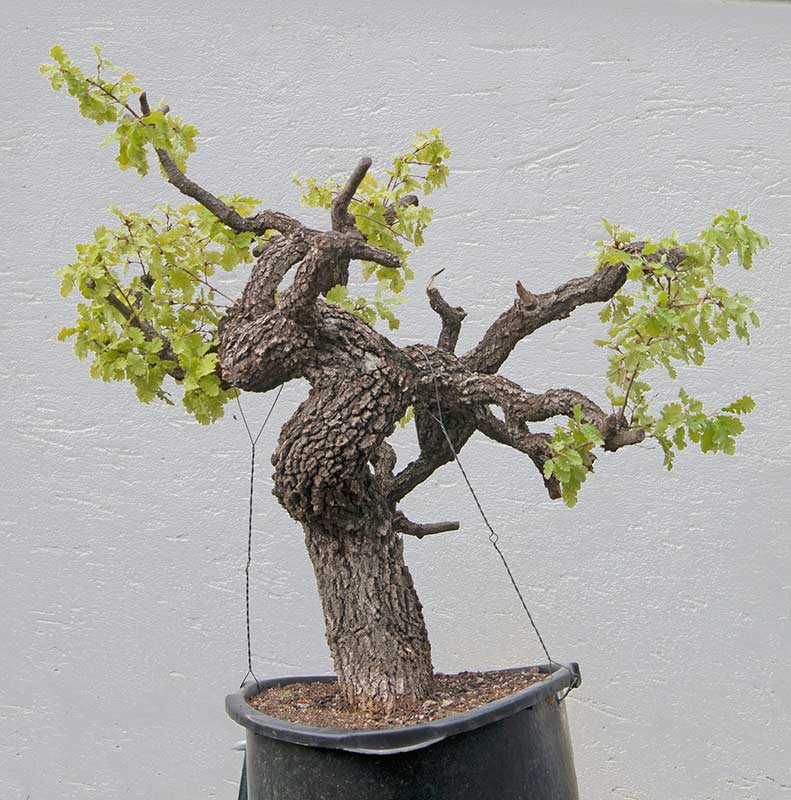 След като дъбът е добре вкоренен, дава първите издънки, кореновата му система ще започне да се развива. През този период е важно да започнете редовно подрязване на корените. Дъбовата коренова система е един развит основен корен, който е като че ли продължение на ствола и много странични, по-тънки и по-слаби клони. За да бъде разклонено и силно, трябва редовно да премахвате излишните малки странични корени, за да образувате постепенно няколко с еднаква сила и размер, които здраво ще държат дървото в малък контейнер. Това също ще позволи образуването на красиви повърхностни корени.