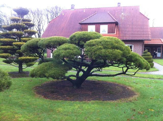 Градински бонсай се формира от вече зрели клони. Препоръчителна основа - кипарис, лиственица, бряст, тис.