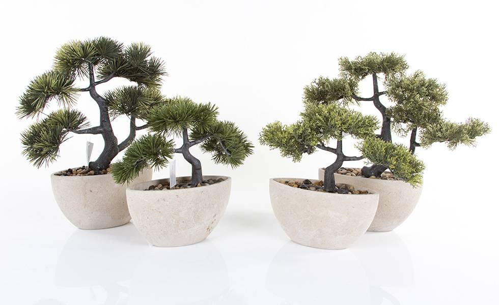 Произходът на бонсай идва от Китай в края на 8 век. По това време той представлява основната украса в китайския императорски двор. С течение на времето се появиха много различни стилове на подобни дървета, които се различаваха един от друг в структурата на ствола и короната. Те се класифицират като улични типове, въпреки че височината им може да бъде два сантиметра за най-малките видове и до един и половина метра за най-високите.
