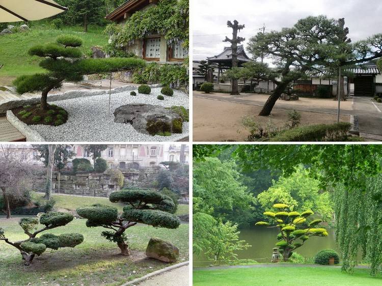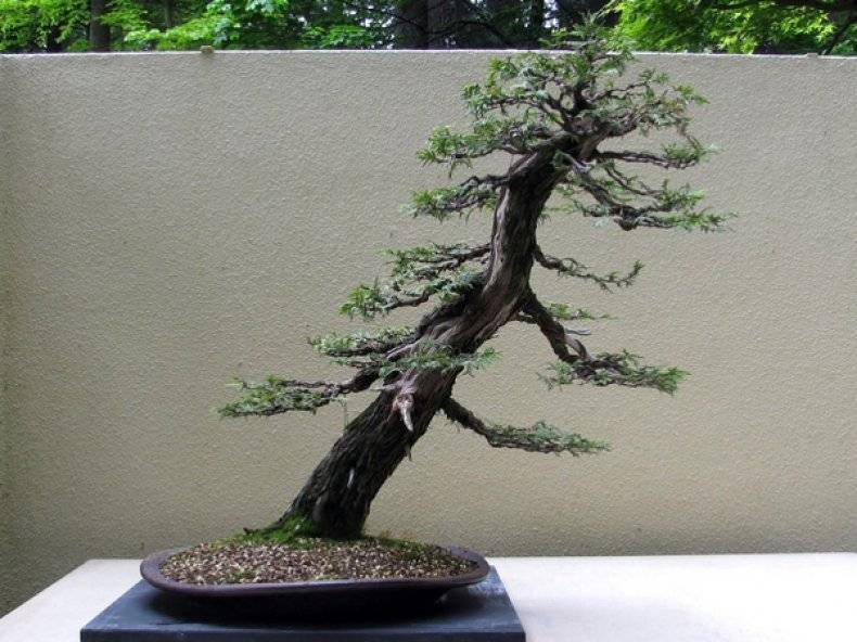- в наклонения стил (шаккан), багажникът е наклонен под ъгъл от 60-80 градуса, сякаш под въздействието на постоянен силен вятър;