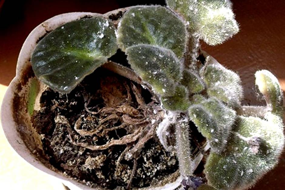 Übermäßiges Gießen für Saintpaulias ist das wichtigste Übel. Stehende Feuchtigkeit führt zur Entwicklung von Pilzinfektionen in den Wurzeln. Die pathogene Mikroflora entwickelt sich schnell und bedeckt die gesamte Pflanze. Wenn Sie keine Maßnahmen ergreifen, verrottet die Pflanze schnell.