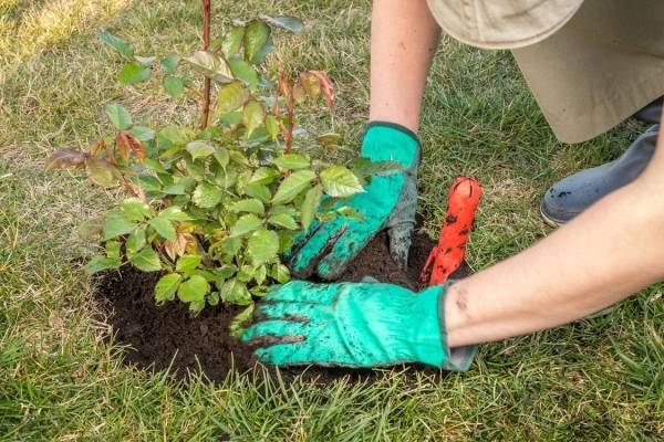 Zum Pflanzen eignet sich ein sonniger Bereich, der durch andere Pflanzen vor dem Wind geschützt ist. Eine Rose braucht einen leichten und fruchtbaren Boden.