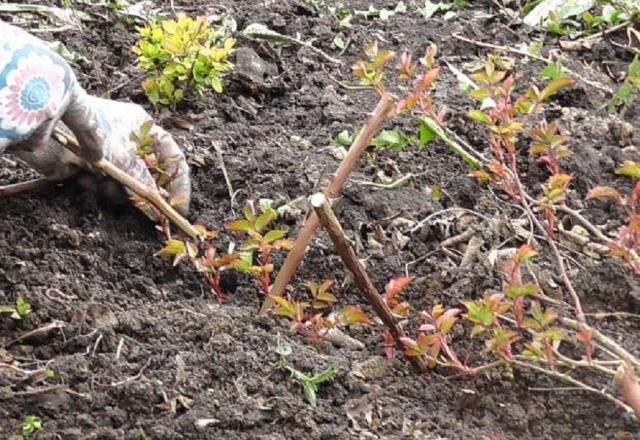 Um eine Rose in der Nähe eines Busches zu vermehren, müssen Sie lange Gräben ziehen und gerade Triebe hineinlegen. Die Zweige sollten mit Stiften befestigt und mit Erde bestreut werden. Bei systematischer Bewässerung erscheinen schnell Wurzeln. Im nächsten Frühjahr muss der Trieb abgetrennt und an einem festen Ort gepflanzt werden.