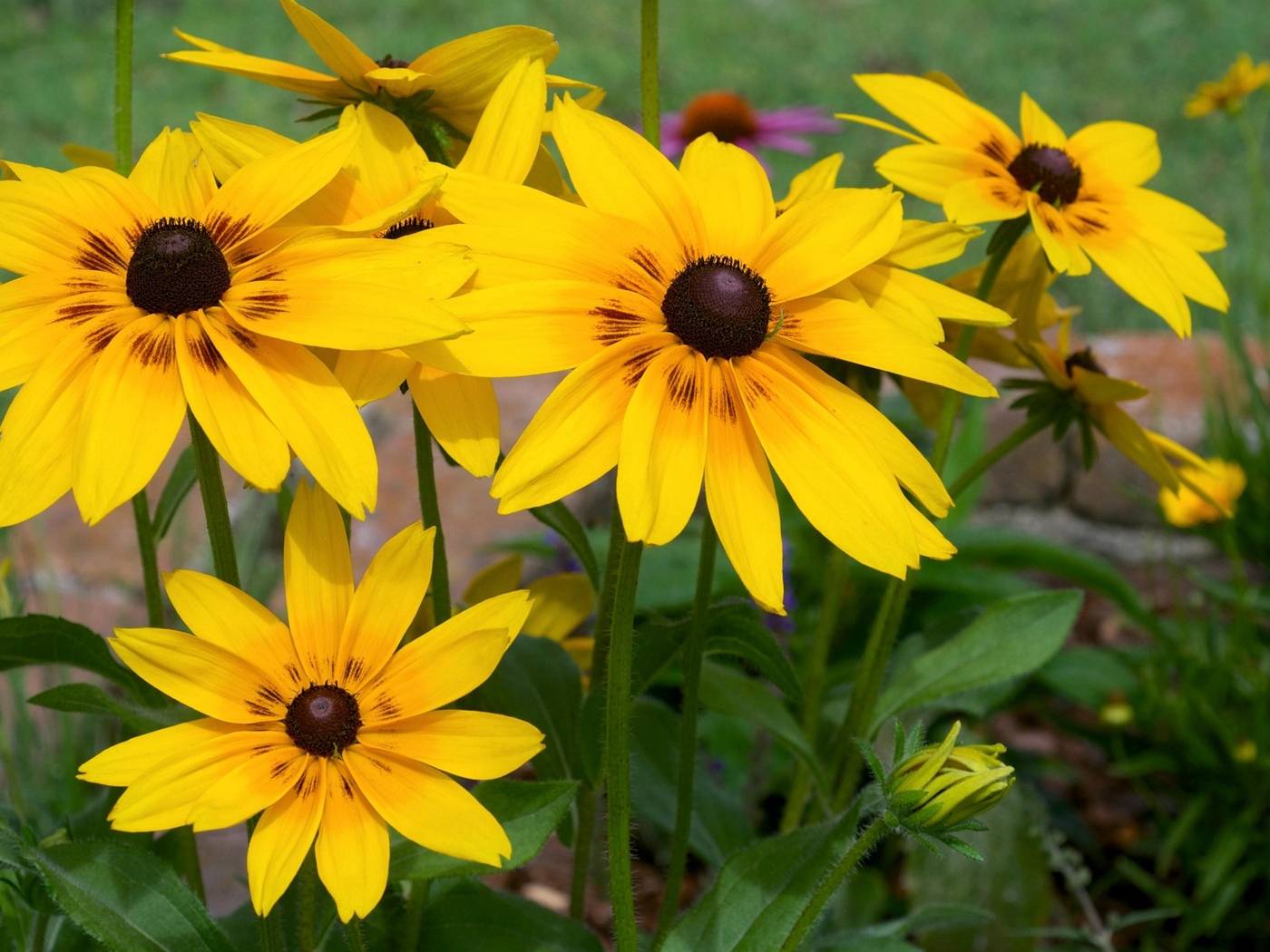 Rudbeckia hirta erreicht einen Meter Höhe, ist schwach oder verzweigt sich überhaupt nicht, ist wilden Vorfahren am nächsten. Die Blüten sind hellgelb mit einem gut definierten dunklen Kern.