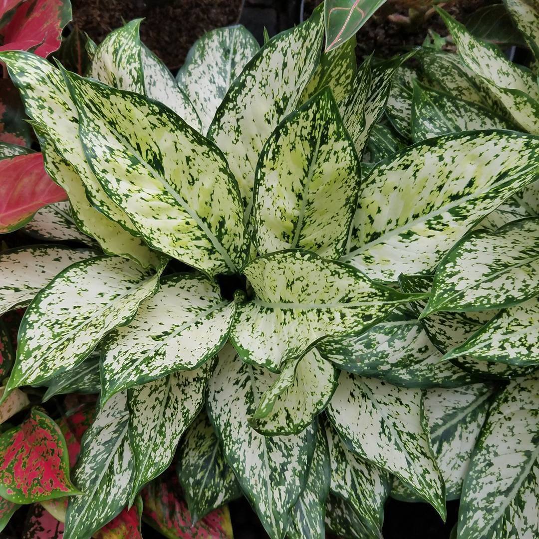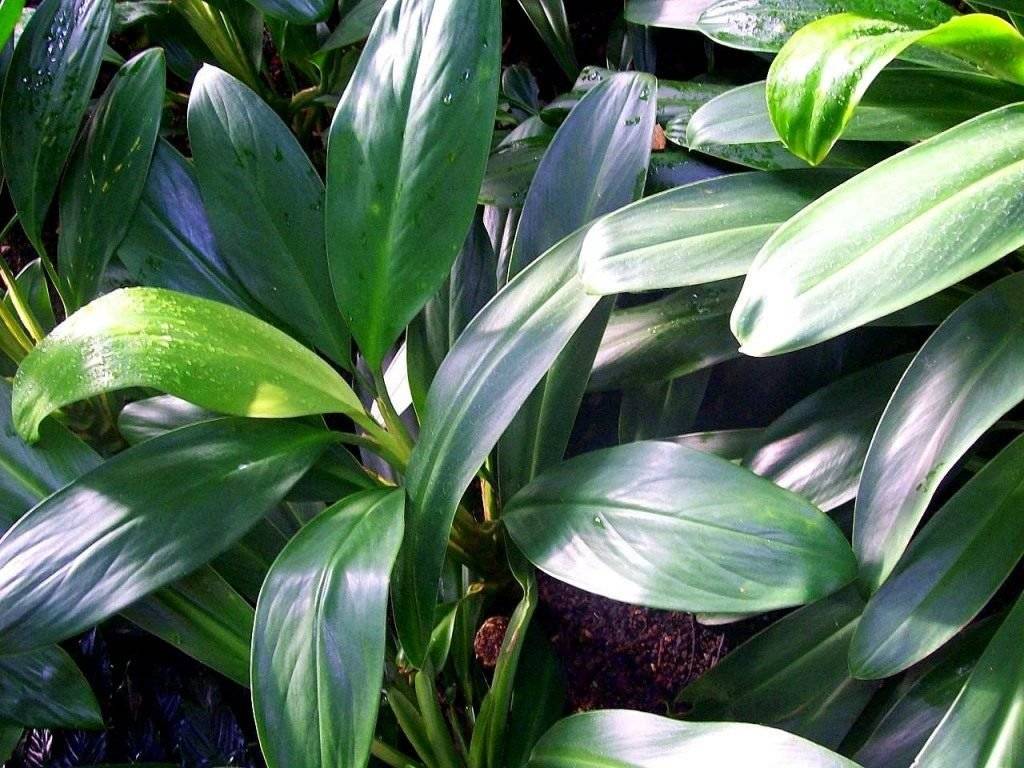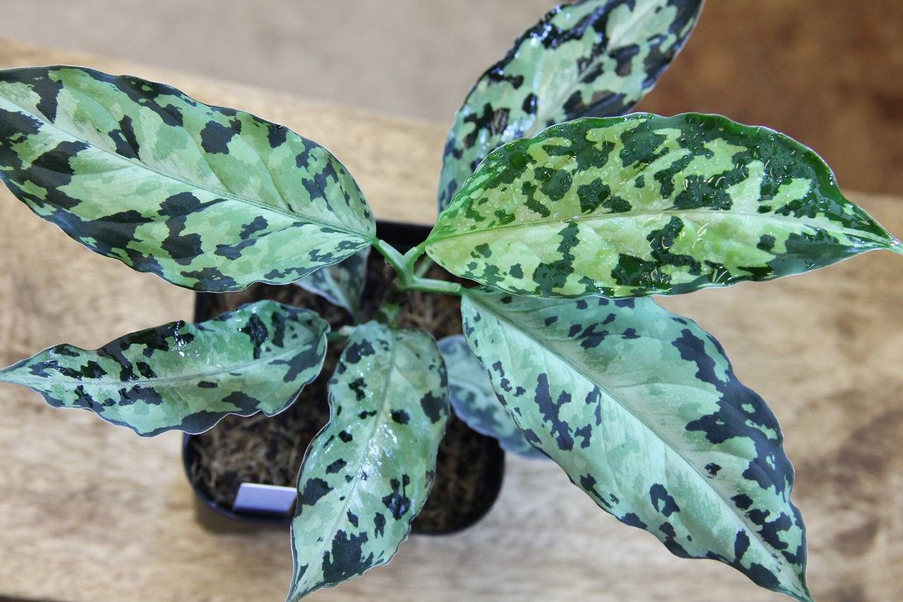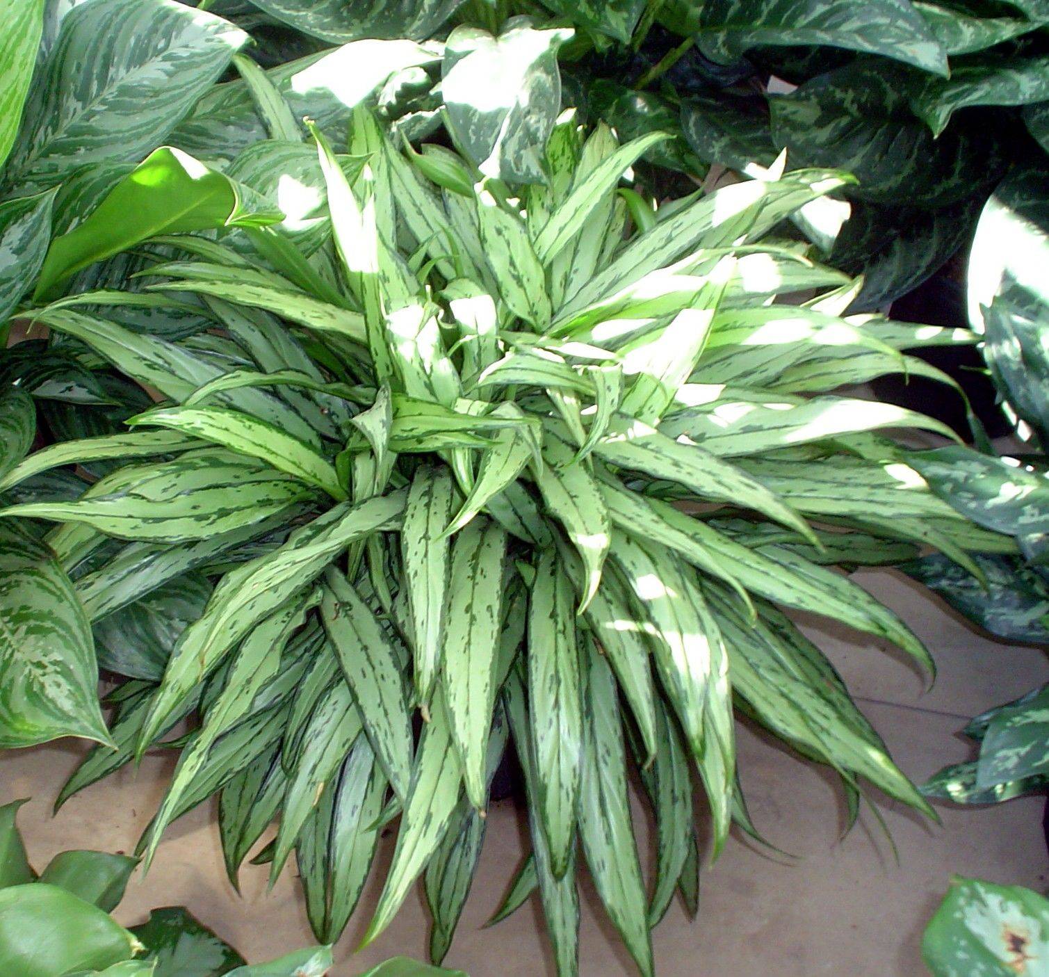 Популярният сорт Aglaonema Marantifolium Blum се отличава със забележим синкав подтон на тъмните и светли части на цвета на листата.