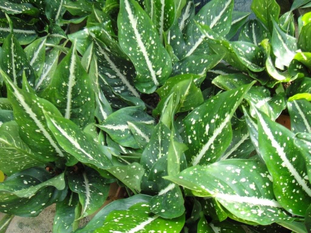 - Макулатум. Цветът е тъмно зелен, листните плочи са овални с хаотични удари с белезникав оттенък, по-плътни в страничните вени.
