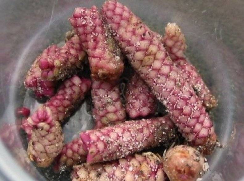 С намаляване на светлинните часове през есента надземната част отмира напълно. Rhizome - коренищата влизат в хибернация. Външно изглеждат малко като удължени червено-кафяви кедрови шишарки с диаметър около 1 cm и дължина до 5 cm, спящите пъпки са разположени в многобройни люспи. През пролетта коренищата се събуждат лесно и бързо изграждат нова зелена маса.