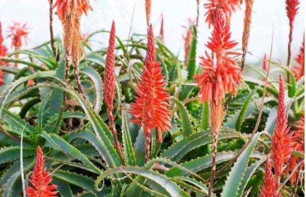 Алое вера е компактен храст, който може да се различи от агавата по цвета на листата му. В алоето те са по-ярки на цвят и по-големи. Веществата, които изграждат сока, се използват за терапия. Родината на цветето е Северна и Източна Африка.