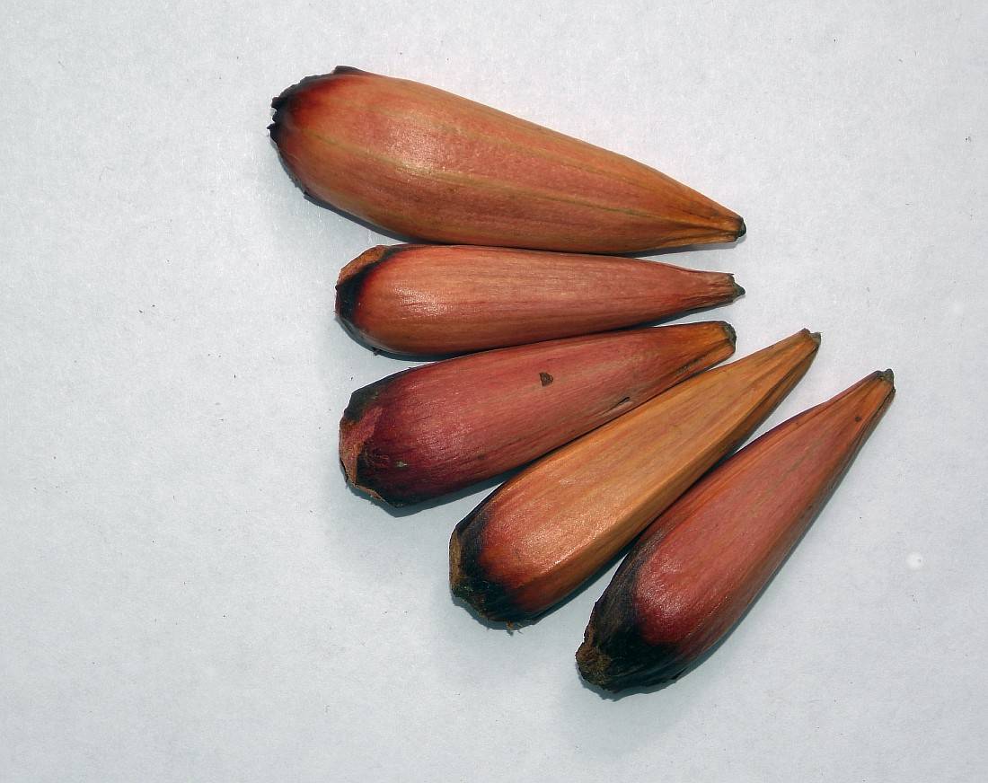 Иглолистното растение не цъфти, а образува сферични плодове, които приличат на големи ядки.