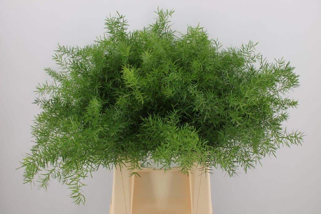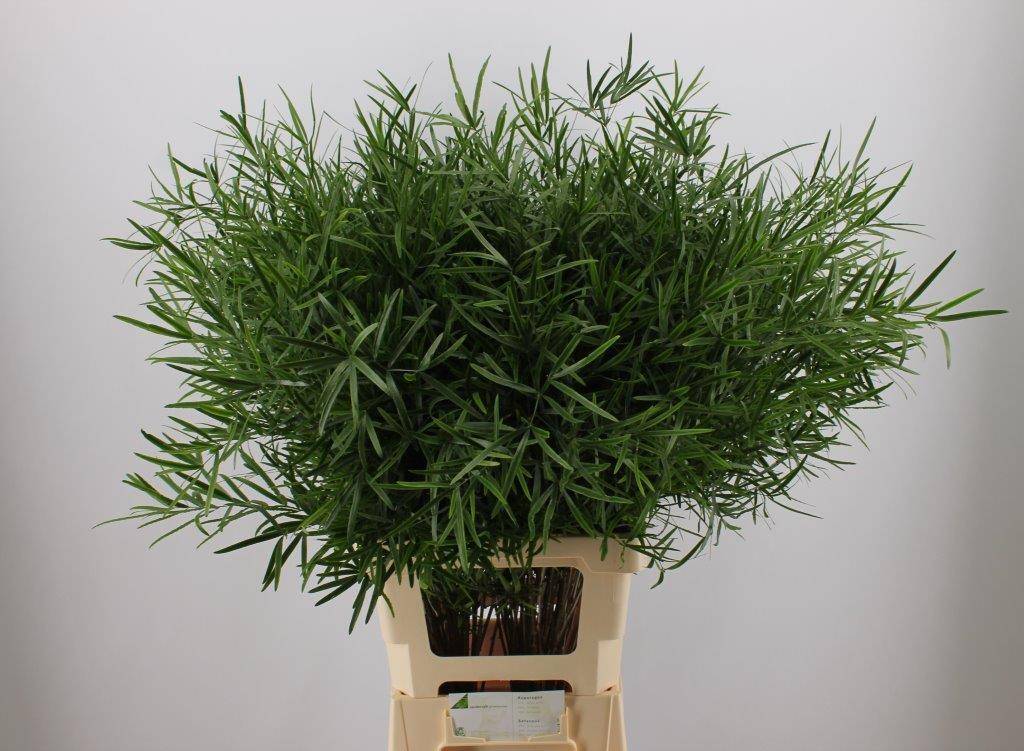 Второто име е перални аспержи, грижата за тях няма да създаде трудности дори за начинаещ цветар. Расте под формата на храст. Характерна особеност е образуването на изкачващи се издънки. Повърхността на стъблата е гладка, гола. Цъфти на гроздове, всеки с по 3-12 парчета цветя. Визуално наподобява папрат. След цъфтежа плодът е тъмносин и сферична форма. Диаметърът на всяка такава кутия е средно 6 мм.