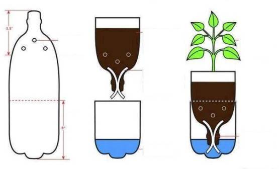 Когато почвата започне да изсъхва, водата ще се издигне нагоре по фитила и отново ще навлажни земята. Влагата ще тече на малки порции в точното време.