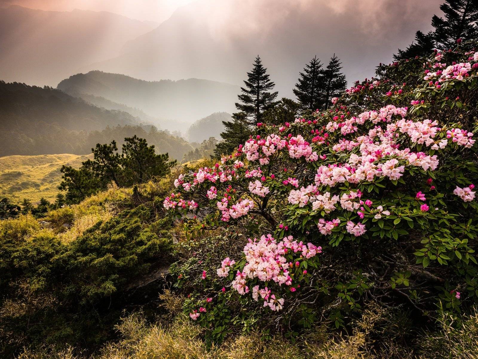 - азалия цветя с различни цветове, от бяло до ярко червено. Има както монохромни, така и двуцветни.