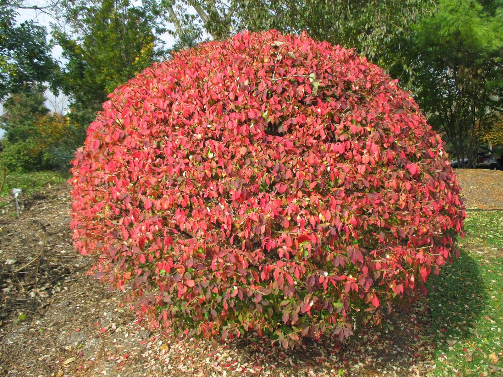 В дивата природа височината на храста може да достигне 4 метра, с декоративно отглеждане - 1,8 м. Културата има повърхностна коренова система. Елипсовидните листа с дължина 2,5-7 см и ширина 1-5 см са боядисани в ярко зелено, което до есента преминава в лилаво-червено, докато зеленината може едновременно да съдържа няколко нюанса.