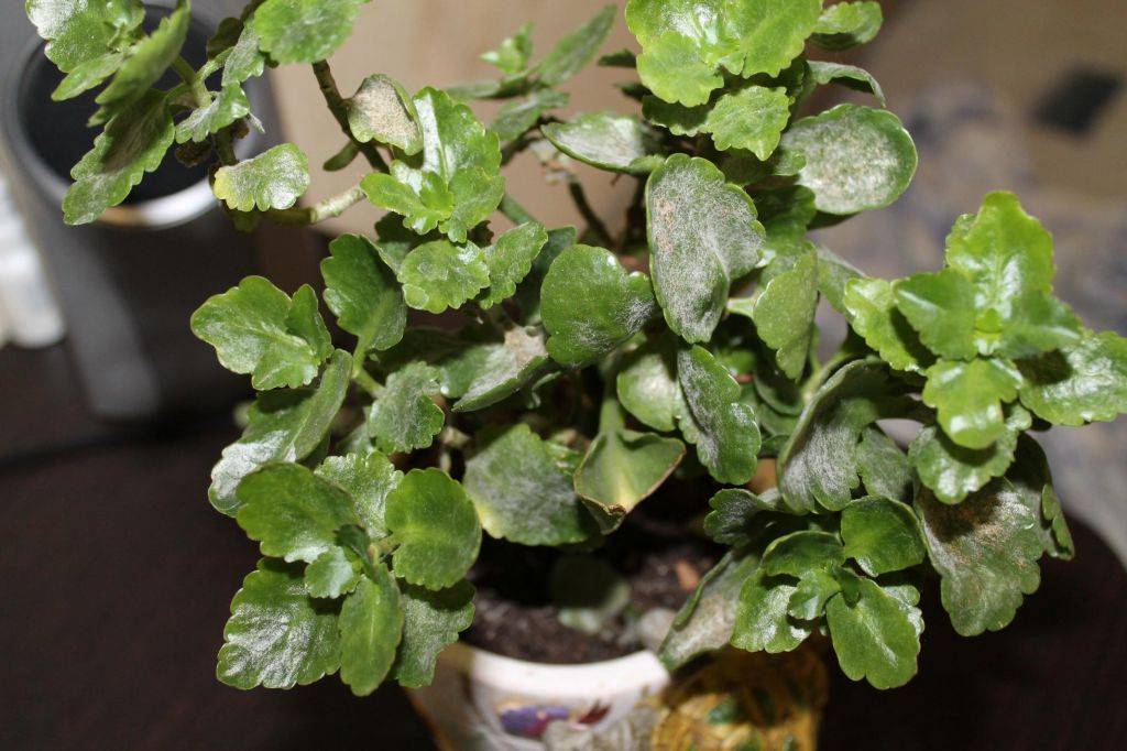 Брашнестата мана често се появява на цветя един до друг в топла, влажна среда. Плаката по листата се забелязва по каланхое. Когато температурата спадне, гъбичките ще умрат, но растението няма да се излекува. Листата постепенно ще се навиват и окапват, а сукулентът ще цъфти слабо и малко.