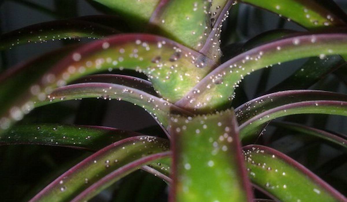 Тези вредители могат да бъдат намерени в долните части на листата. Те печелят там, организирайки цели колонии. Идеалната среда за бързо размножаване на трипса е ниската влажност и високите температури на въздуха. За да се изгони такъв вредител, е необходимо растението да се третира с инсектицид, като се спазва почивка между обработките от 10 дни.