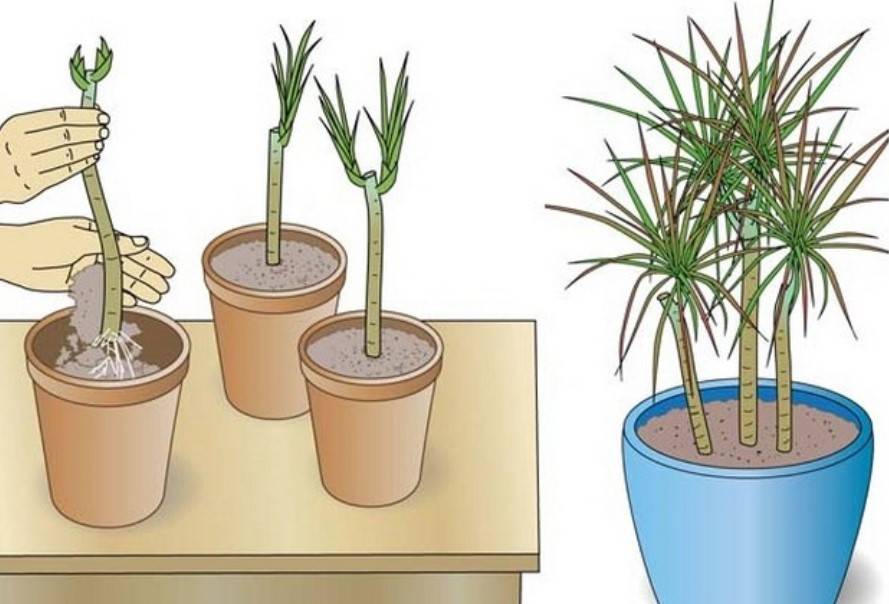 Възрастна драцена, която е загубила привлекателния си вид, може да бъде актуализирана чрез отглеждане на по-младо растение от нея или чрез развъждане на няколко нови. За това: