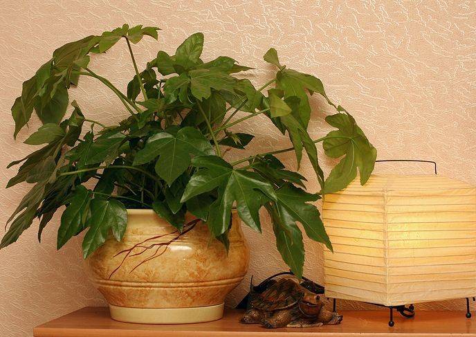 Fatsia Japonica е красиво декоративно растение. Големите му листа могат да се превърнат в основната украса на стаята. За да се поддържа декоративен вид, е необходима подходяща домашна грижа за японската фатсия. Това изисква поливане, тъй като горният слой на почвата изсъхва, торене от пролетта до есента и подрязване на продълговати издънки. Всичко това не изисква много усилия, но красиво и полезно растение ще бъде наградата.