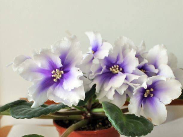 Листата са светлозелени, рунести. Формата е заоблена, понякога овална, леко заострена в краищата. Цветята се събират в коренова розетка с размери 7-10 см. Голяма розетка се прави по-компактна, когато дръжките не се оставят да растат на дължина, те се отрязват.