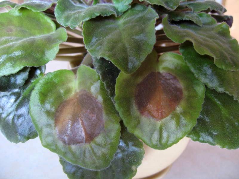 Неправилната грижа може да засегне листата на цветето. По тях могат да се образуват тъмни петна. Това е резултат от неспазване на правилата за поливане, прекомерно преовлажняване на почвата. Освен това се появяват петна, ако напръскате и оставите растението в течение.