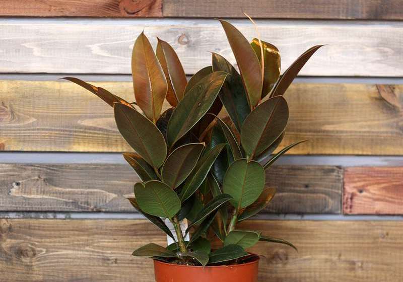 - Каучук. Има големи листа, наситен зелен цвят, на повърхността има малък цъфтеж. Името си получи от сока. Преди това от него се правеше каучук.
