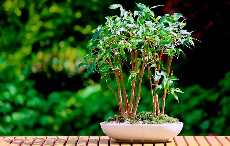 - Ficus Microcarpa. При естествени условия този вид растение може да нарасне до 25 м височина. Расте поради факта, че сплита с корените на съседни растения. Най-често бонсаите се образуват от фикуса на този сорт. Корените му могат да се огънат в желаната посока. Короната на такива дървета е компактна, зелена.