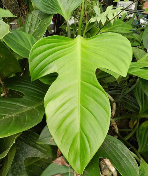 При младите растения листата са с форма на сърце. При възрастни екземпляри листата са големи (с дължина до 90 см), кожести с гофрирани ръбове, два пъти перисто разчленени. При възрастни екземпляри формата на листа става по-сложна и здрава, а самият лист е по-голям. Растението е много декоративно.
