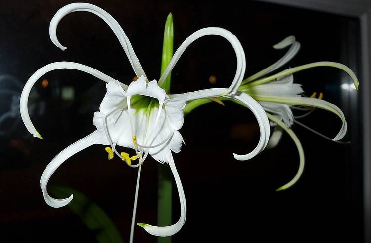 - оптимална температура. По време на периода на цъфтеж, паяковата лилия се чувства добре при 18-20 ⁰С. След края на вегетационния период температурата трябва да се намали до 5-15 ° C;