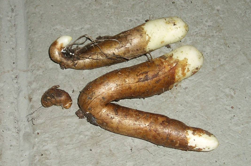 При размножаване с грудки коренището се изважда от земята и се нарязва на парчета. Повредените зони трябва да се третират с натрошен активен въглен, за да се предотврати инфекцията и разпространението на инфекцията.