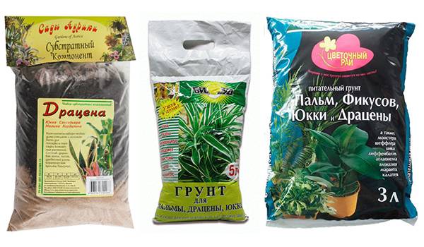 Знаейки какъв вид земя е необходима за драцени, можете да започнете да избирате почвена смес. От рецептите на магазините е подходяща земя за палми. Субстратите на TM "Sady Auriki", "Good", "Garden of Miracles" са се доказали добре по отношение на цена и качество.Закупените смеси са стерилни, включват необходимите компоненти и спестяват време. Ако не е възможно да закупите готова почва, можете да я приготвите сами.