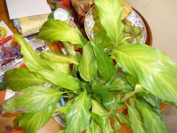 - Пожълтяването на листата възниква поради липса на влага в почвата. Това се случва, ако почвата за спатифилум е била тежка. Постепенно тя става по-плътна.