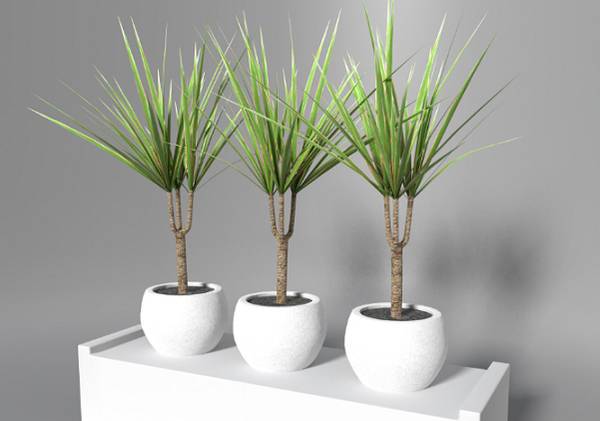 - маргината или мадагаскарското драконово дърво. Расте до 2 м височина. Има лигнифицирано стъбло, тънки дълги листа с червеникава граница. Появата на палмата най-често се свързва с драцената Маргината.