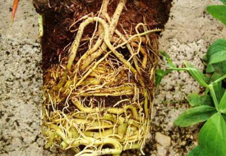 Здравите корени на фалшивата длан изглеждат като оранжеви гладки дантели без възли. Изгнили или засегнати от гъбичките се изпразват отвътре, горните тъкани се отстраняват с капак. В тази ситуация трябва да отрежете болните части на растението. Не трябва да има и следа от развалени области.