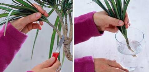 Ето план стъпка по стъпка как да режете драцена за странични издънки: