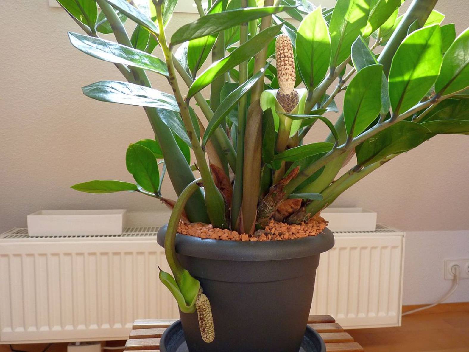 Периодът на цъфтеж може да се нарече връх на активната фаза от развитието на замиокулкас. По тази причина в този момент той се нуждае от специални грижи.
