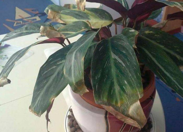 - върховете на листата изсъхват - недостатъчно поливане и влага;