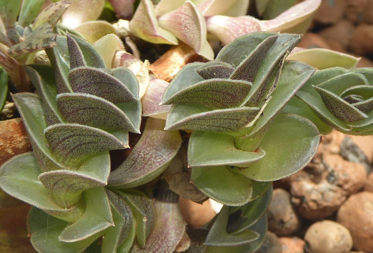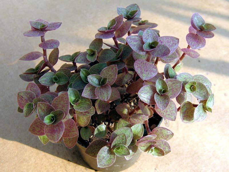 Тази кализия е дребнолистна, стъблото не расте повече от 10-15 см. Листът е зелен от предната страна, лилав отзад.