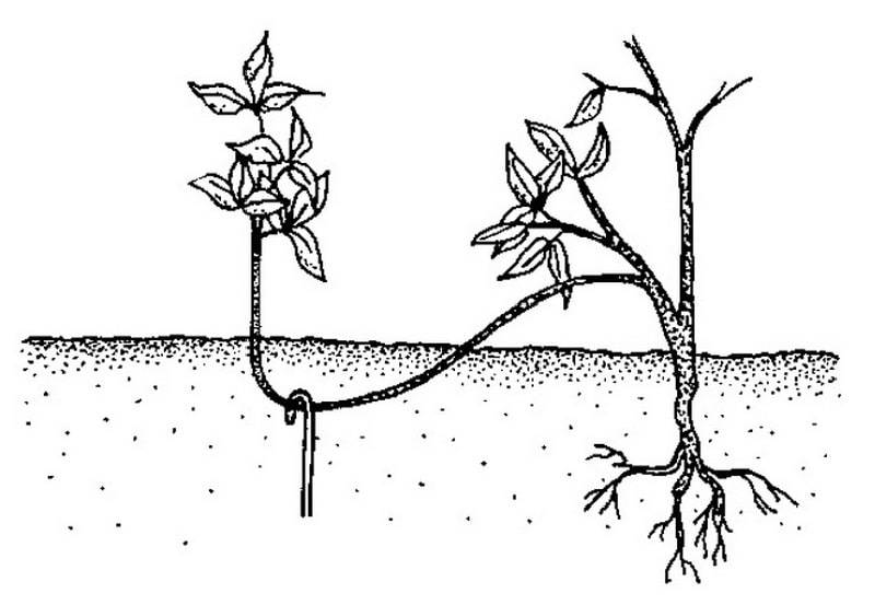 Същността на метода е, че част от стъблото може да се вкопае в земята и след известно време то ще пусне корени. За изпълнение трябва да имате пота с голям обем. Вторият вариант е да поставите друг контейнер до него и да поставите кълновете там. Когато издънката пусне корени, тя се отрязва от майчиния храст.