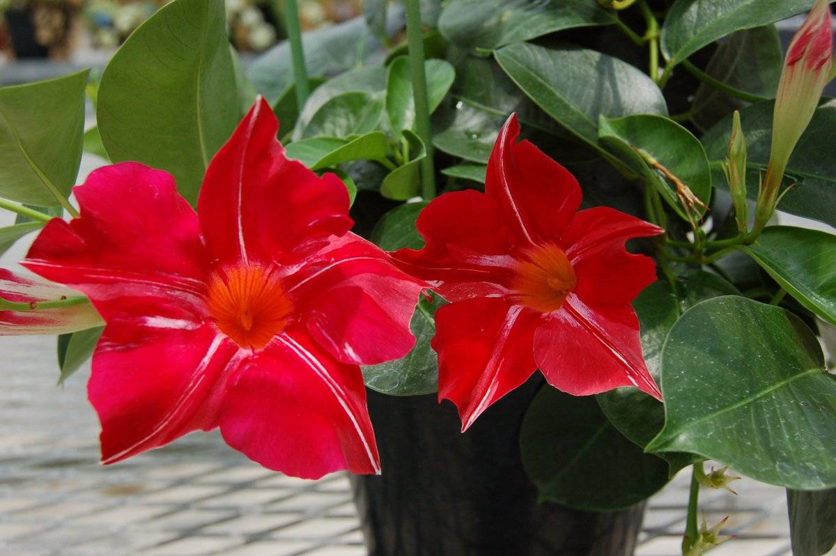 Стайно цвете с червени цветя на диплодения е катерещо растение от семейство Кутрови. Сред сортовете и сортовете има както едногодишни, така и многогодишни растения. Многогодишните видове се отглеждат в закрити условия. Дипломацията се нарича още мексиканско дърво на любовта и бразилски балсам.