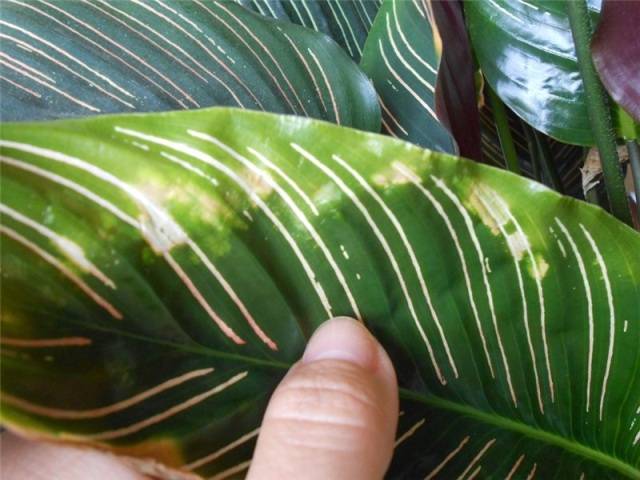 - Листата избледняват, когато са изложени на ярко слънце.